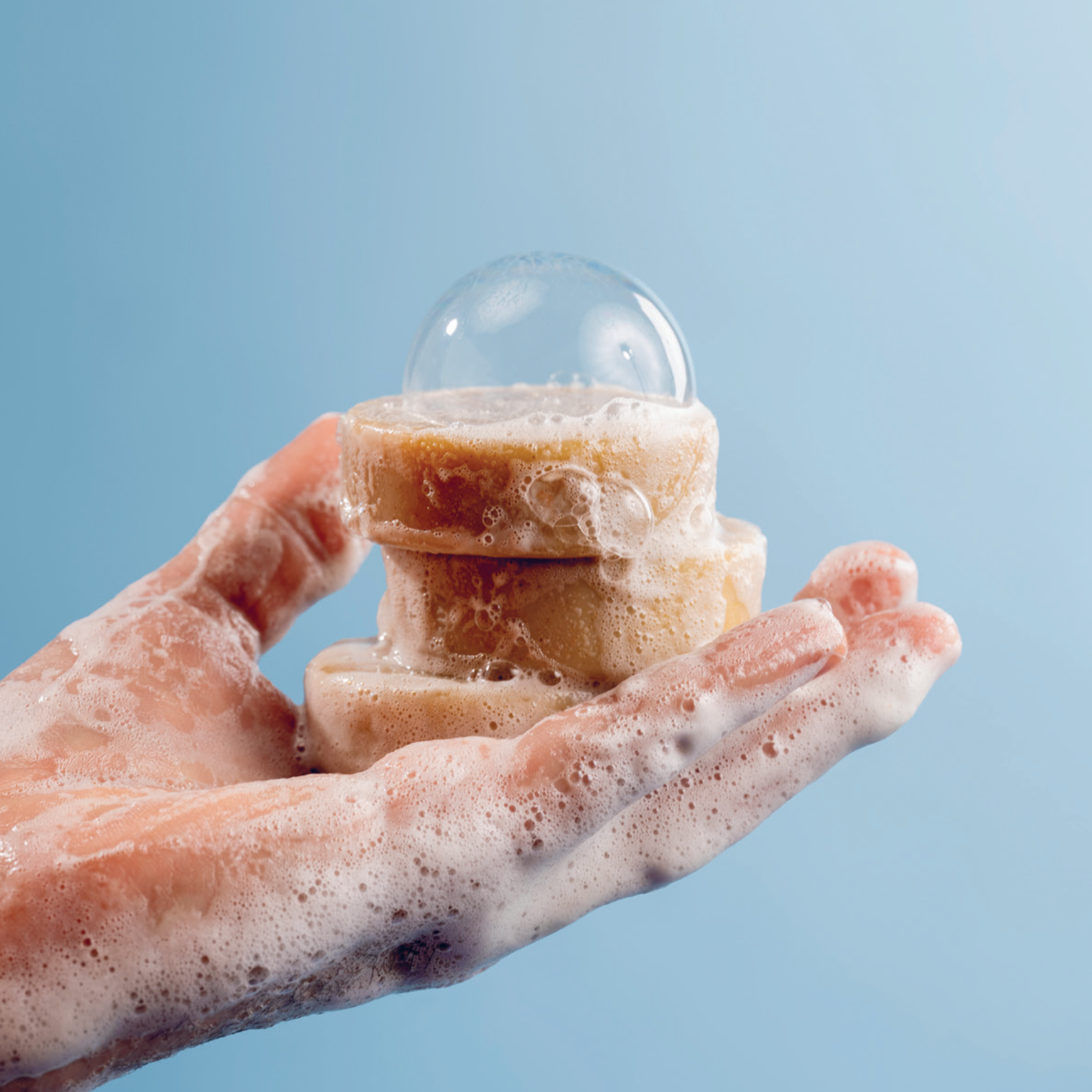 Eine für alles: Die ACHSELKUSS Seife reinigt und verwöhnt Körper, Haare & Bart und ermöglicht auch eine schonende Rasur. So brauchst du weniger Produkte und sparst Geld, Platz & Müll.